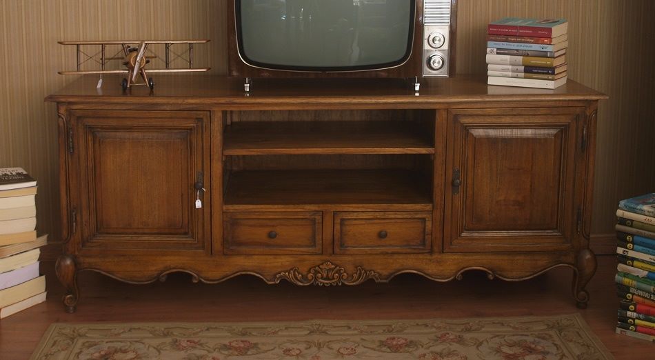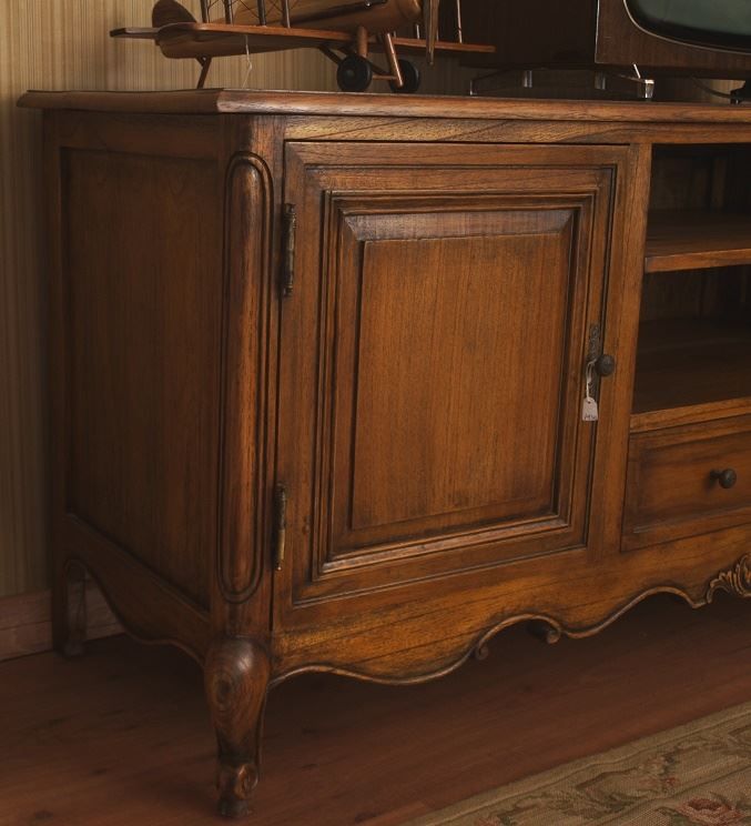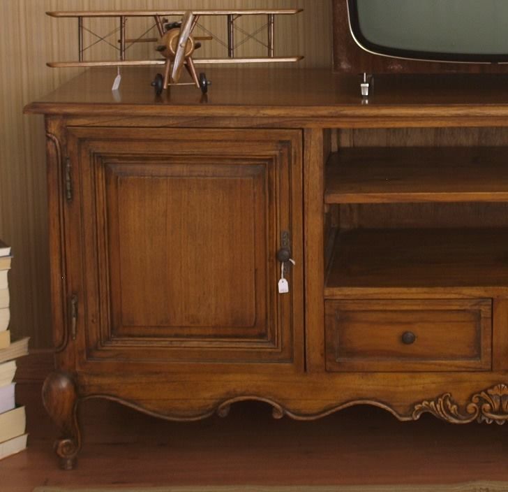 Μικρό μπουφέ- έπιπλο τηλεόρασης. Διατίθεται μόνο σε ποικιλία δρυός με πανέμορφα <νερά> ξύλου και ασύγκριτη αντοχή. Χειροποίητο και πλήρως μασίφ. Η σχεδιαστική ομάδα Μαρασκίνο <πάτησε> πάνω στις γραμμές και τα διακοσμητικά στοιχεία ενός καταπληκτικού και σπάνιας αισθητικής ντουλαπιού Louis Quinze για τον μοναδικό σχεδιασμό αυτού του τόσο όμορφου και εξυπηρετικού επίπλου.