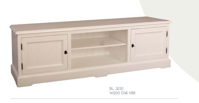 Ένα θαυμάσιο έπιπλο τηλεόρασης, με ιδιαιτέρως μεγάλη τάβλα, που θα υποστηρίξει κομψά κάθε μονάδα αναπαραγωγής εικόνας χωρίς κανένα συμβιβασμό σε κομψότητα. Είναι, θα έλεγε κανείς, η τέλεια προσαρμογή ενός χαμηλού μπουφέ ή κονσόλας με αποθήκευση, σε έπιπλο για την τηλεόραση. Το υλικό του είναι πεύκο ποικιλίας Pitch Pine.
