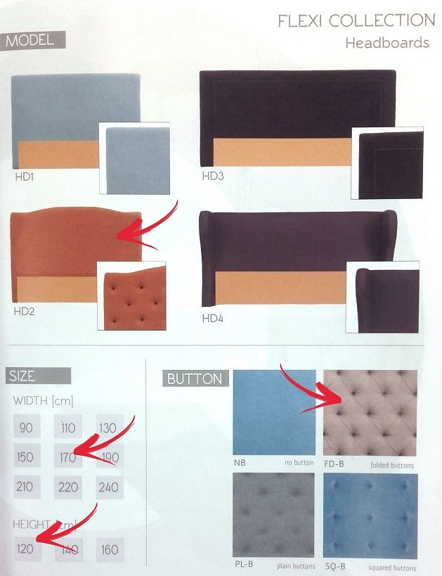 Στην Flexi κεφαλάρια κρεβατιού πρότασή μας, μπορείτε να διαλέξετε ανάμεσα σε διάφορους τύπους κεφαλαριού και ντυμένης βάσης-υποστρώματος κρεβατιού με αποθήκευση ή χωρίς.