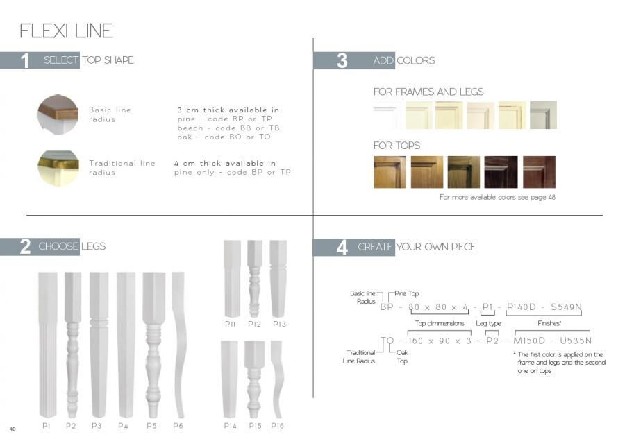 για να περιηγηθείτε στην συλλογή μας με διαθέσιμα φινιρίσματα, από όπου θα διαλέξετε χρώμα και στυλ για τα πόδια και την τάβλα.